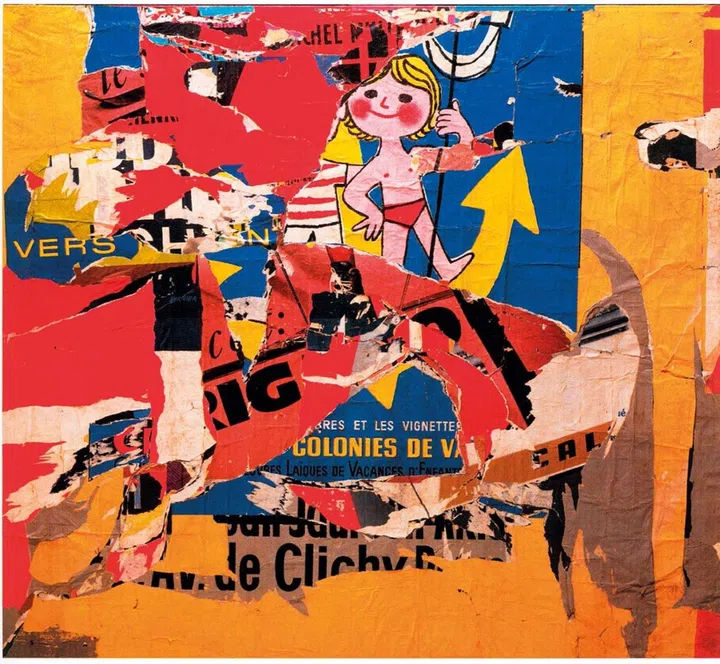 “I did not try to criticise society. I just wanted to illustrate it in an original way,” he says. An insatiable collector and historian, he retrieved fragments from the life of the streets, shreds of barely visible letters and figures from advertising posters pasted on public billboards lacerated by the elements or ripped by anonymous hands, which he saved from obscurity, assembled and mounted on canvas.