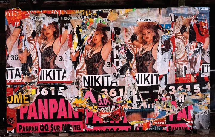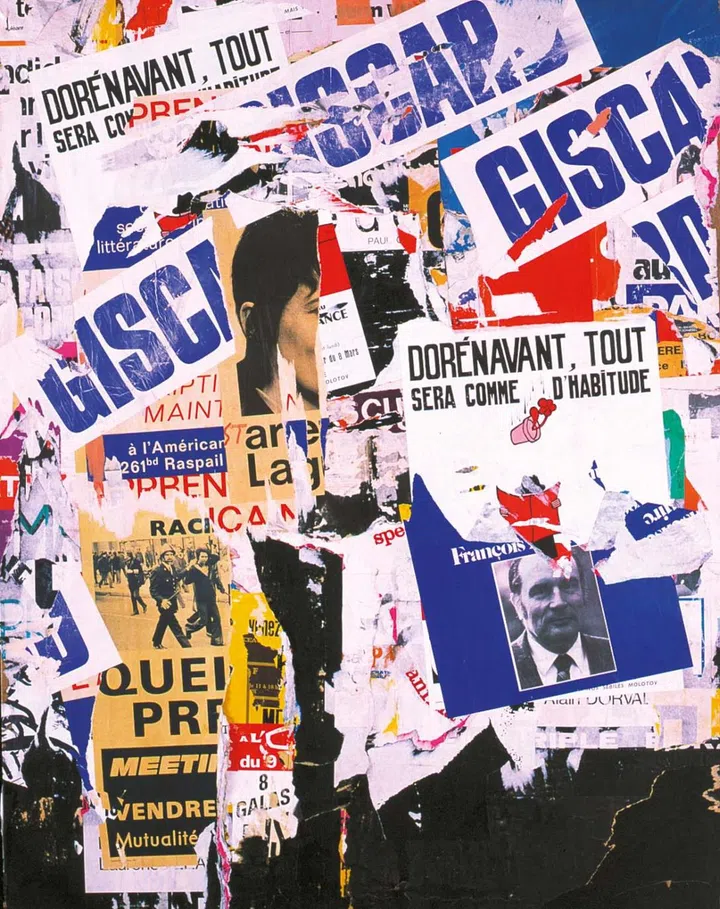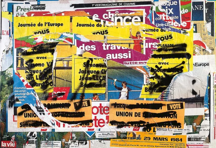 For a half-century, French artist Jacques Villegle wandered the urban landscapes in search of anonymous, torn and deteriorated posters to turn into paintings with a strong visual impact that told the story of his generation and documented the ever-changing history of our contemporary cities.