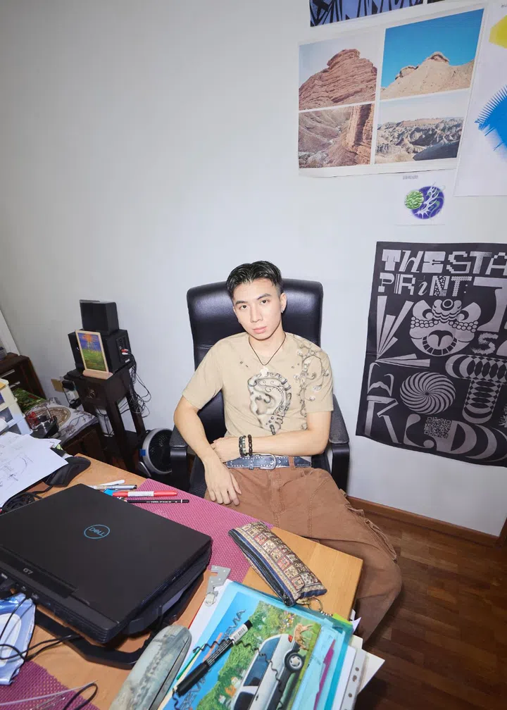Lukas Lee left his first full‑time job in exhibition design after three months to do freelance work in the same field. It has allowed him to dabble more in 3D motion graphics – what he ultimately hopes to have a career in – as well as focus on his own label Yum World, another passion of his. “I did have moments of self‑doubt, unsure if I was good enough to go solo only after three months of full‑time experience,” he says. “But I realised that if I don’t try, I’ll never know if I can make it.”