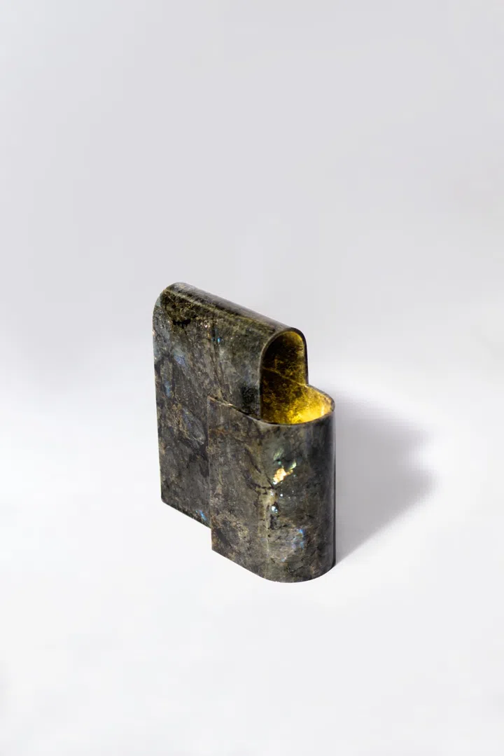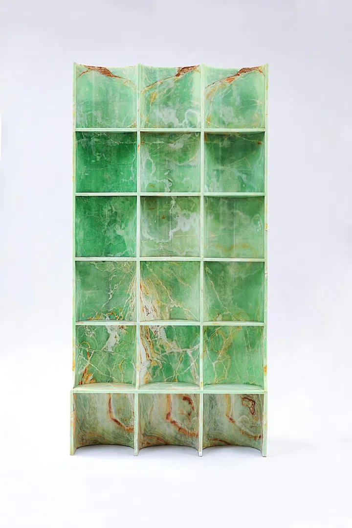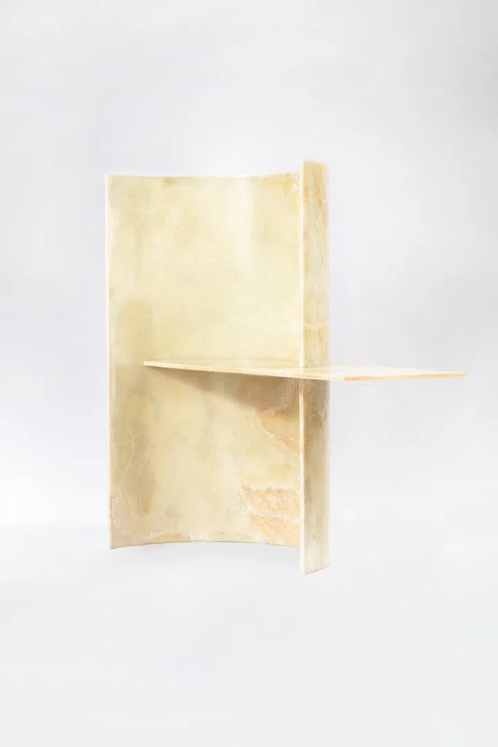 Artist KSY's debut collection includes a stunning shelf carved out of "bent" onyx.