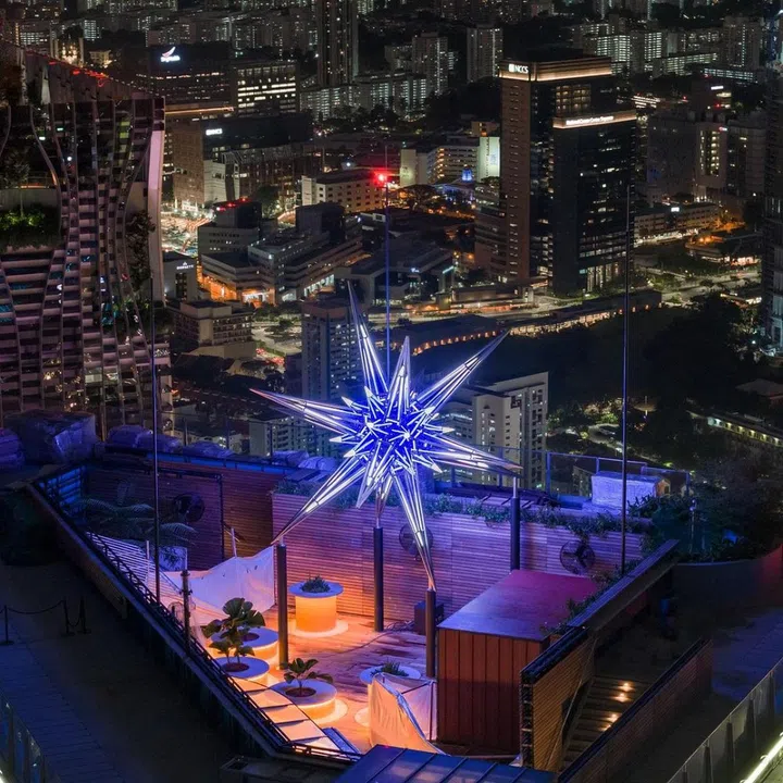 Operated by homegrown powerhouse OUE Restaurants, HighHouse is also a platform for some major art (and we mean it). Take Malaysian light artist Jun Ong's massive 10 metre-tall installation (pictured) - titled Astra (Latin for "star"), it's the artist's monumental interpretation of the celestial phenomenon known as the supernova, the most brilliant explosion of a star that radiates more energy than the Sun will in its entire lifetime. The Astra installation can be found at Nova, the tallest rooftop bar in Singapore located right above HighHouse, and is run by the same group.