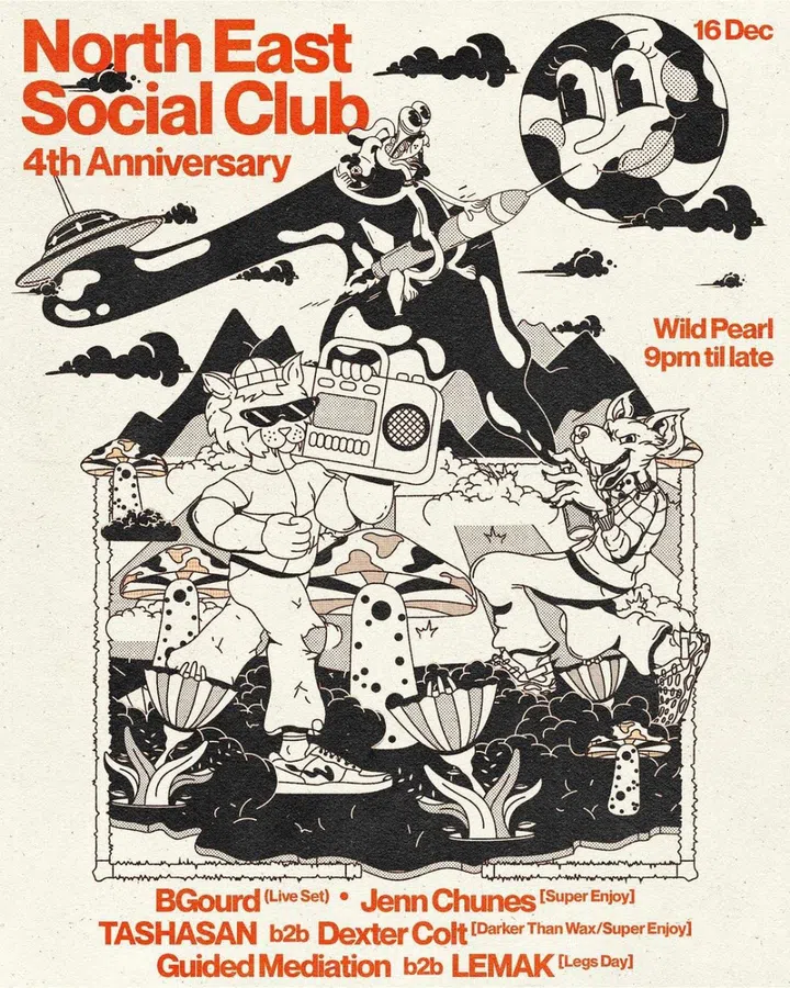 Indie gig and party organisers North East Social Club commemorate their fourth birthday with a cool little celebration at Wild Pearl! Fittingly, its anniversary party will feature some familiar local favourites from their illustrious past and present, including a live performance from Singapore rap’s bitter god BGourd, followed by DJ sets from Jenn Chunes, Guided Meditation b2b LEMAK, and co-founder TASHASAN b2b Dexter Colt. If you’ve been a friend, fan, or follower of their dynamic shows over the past few years, why not come through this (inevitably) rowdy soiree to wish the hardworking collective many happy returns?