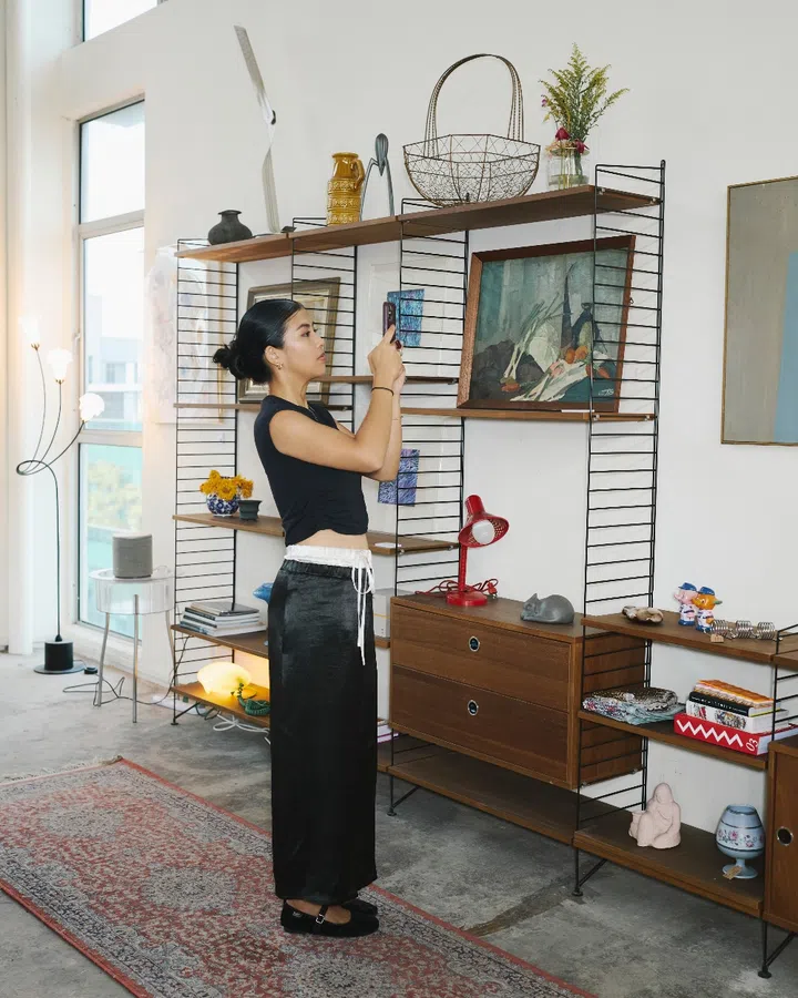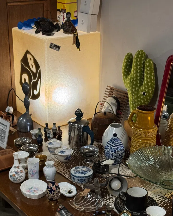 Najwa (pictured above) runs the whole show at Objects herself – she sources, restores vintage finds, packs the orders, manages the store’s social media and handles the logistics. The money? It comes from her past life as a corporate data analyst. Everything she earns now goes straight back into Objects, which has been quietly gaining momentum with the opening of its first studio space this August. The plan is to turn it into something more than just a workspace – think a venue for small events, collaborations with other creatives she loves. Case in point: the space soft‑launched with an exhibition by fellow small biz Art Again, a secondary art marketplace.