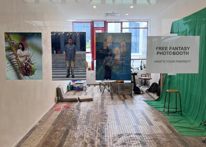KS: “How do you convince people that art doesn’t just belong in a museum or gallery? I think they need to come into it on their own so even having small daily encounters or understanding what an artist does is an achievement. We are right next to a Zumba studio – when its classes go on, our walls reverberate. We are as every day as you can get. One of the past tenants pointed out that all sorts of retail spaces exist here, and it got us thinking about what we’re offering to the person who comes to Peninsula Shopping Centre. I think the answer is culture... There was a co-residency shared among three young artists – Kar-men Cheng, Phoo Myet Che and Syahrul Anuar – that showed here last October and was particularly successful in engaging the community around us. The project was a fantasy photo booth (pictured), so they set up a green wall and invited tenants and passersby to share their fantasies. They next superimposed these fantasies into their portraits’ backgrounds and then printed them out as a keepsake... We would like to think that they revived some form of vibrancy and community in Peninsula Shopping Centre through their art.”