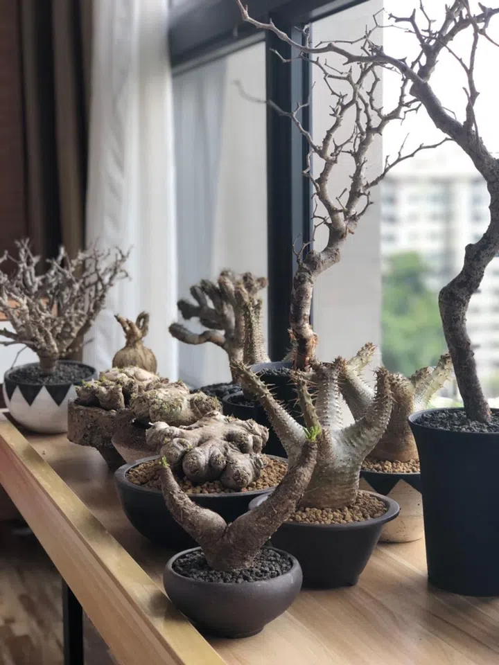 Plant species he owns: “I collect mostly exotic caudiciform plants such as Pachypodium (pictured), Adenia, Euphorbia and Stephania. These can be found around Southeast Asia and as far as Africa and America.”
