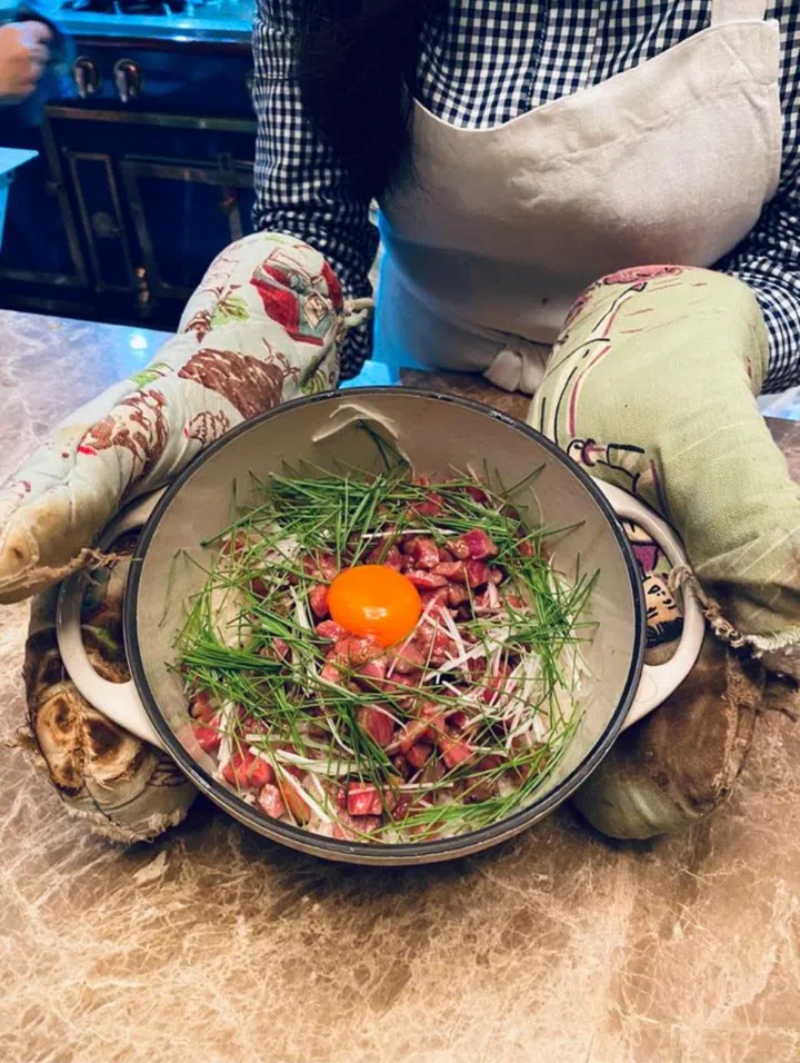 "I love serving food inspired by memories of my travels. For the past few years, I have been doing a series of white truffle dinners in late-fall early-winter inspired by my trip to the Piedmont region in Italy. They include homemade Tajarin pasta with white truffle shavings, white truffle pizza, vitello tonato, tortellini en brodo and a Japanese-inspired claypot rice with wagyu beef with shaved white truffles (pictured). It’s an opportunity for me to share those memories with close friends and family here in Singapore."