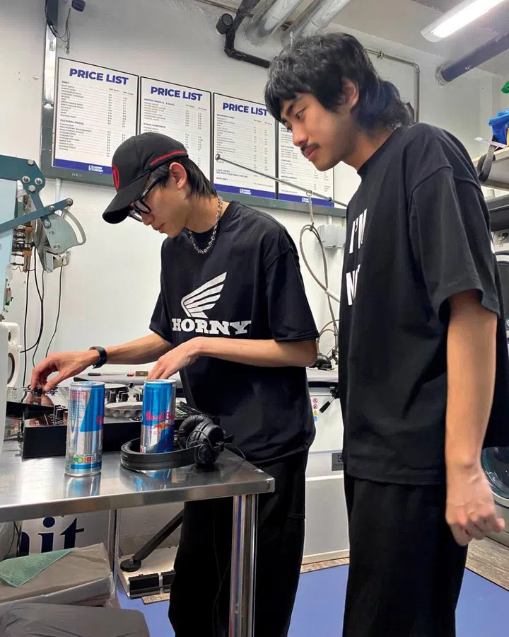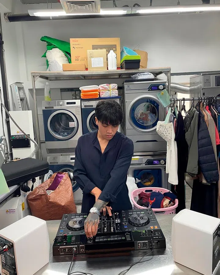 Peh’s family runs the professional laundry business and he works there Fridays to Wednesdays as a dry‑cleaner. The idea to give Lagoon Laundry a pulsating second life on Thursdays – when it doesn’t operate – was born out of his love of DJing (he reveals that he has spun at Thai discos and several defunct clubs) and his playful, experimental nature: Why not set up a controller on site and record one playing?