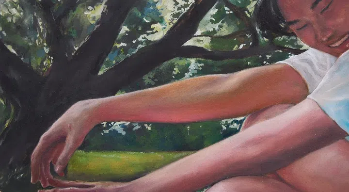 Introduce your final-year project: “Watch the Sunrise with Me delves into the intricacies of endearment through a series of paintings featuring two of my muses. Each painting distinctly celebrates the myriad facets of connection between two people – intimate moments, bittersweet partings, joyous reunions – and is meant to evoke a sense of nostalgia and hope, and invite viewers into these poignant vignettes.”