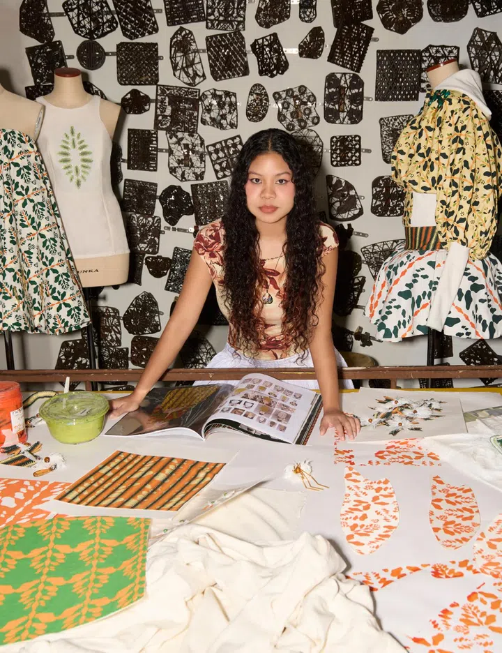 Introduce your final-year project: “My final-year project is about celebrating nature. Not only does my collection feature textures, shapes and colours inspired by nature found in the tropics, but it is also crafted from recycled and upcycled fabrics such as pineapple leaf fibre, which have been deconstructed and reimagined. I’ve combined different textile manipulation techniques such as digital print, silk screen, and hand and digital embroidery to give the fabrics an interesting new dimension. Repurposing existing materials reduces the demand for new resources.... Ultimately this collection is meant to inspire contemporary sustainable fashion practices.”