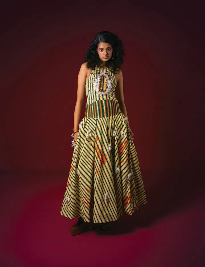Her practice in her own words: “I am a fashion and textile designer. My practice is often inspired by fashion identities, ecologies and heritage. The fluidity and multi-perspective nature of art and design is what draws me in the most. Thus, my work tends to gravitate towards contrasting and juxtaposing themes. My textiles explore layering, mixed media techniques and playful colour combinations.”