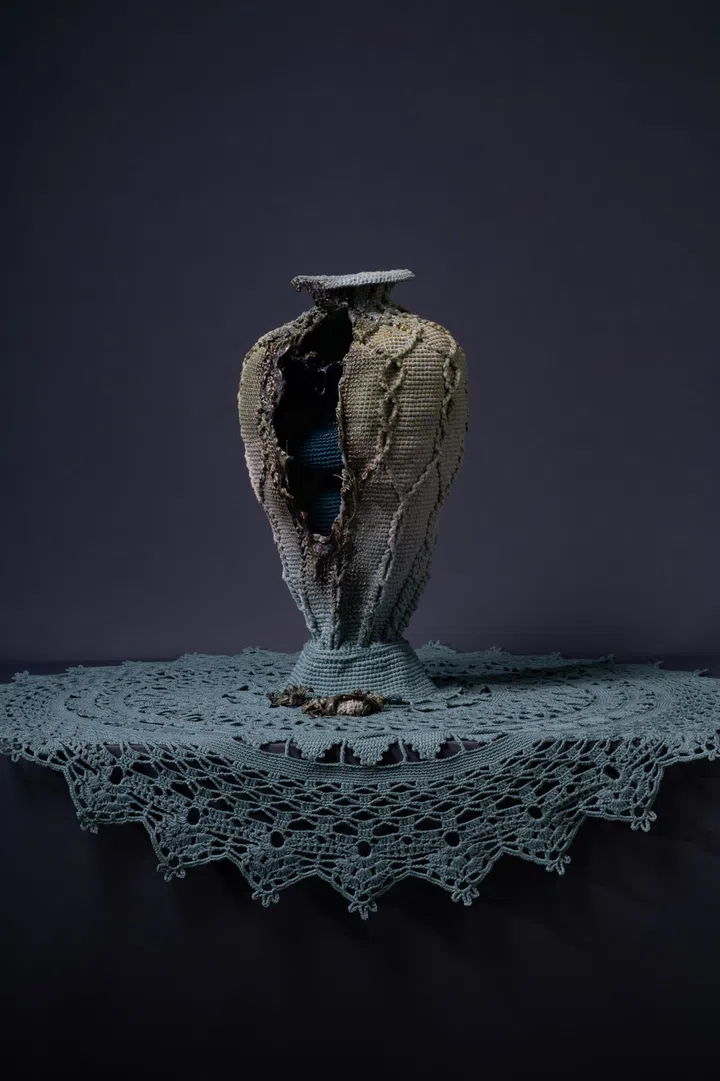 We last saw crochet artist Kelly Limerick's beautiful mixed media artwork adorning the walls at Gucci's revamped Marina Bay Sands store last Nov and now, she's back with her inaugural solo show with an art gallery. Titled Unbecoming, the exhibition focuses not so much on the end product but rather, the process itself; Limerick crocheted five vases – before turning a flame onto these meticulously crafted creations.