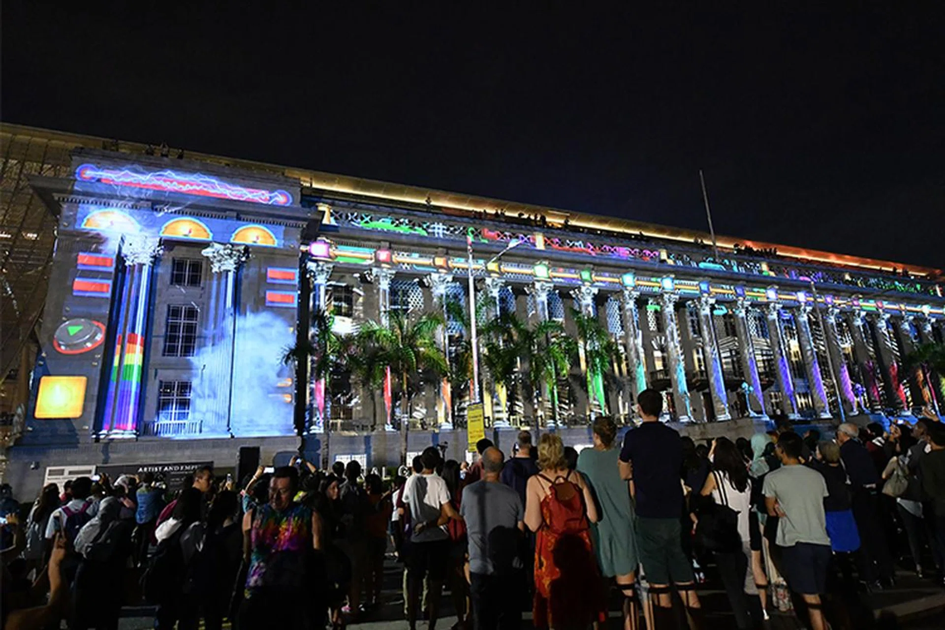 The facade of the National Gallery will be turned into an interactive canvas for audiences to create public artwork. Titled 'Chromascope', visitors are invited to participate by stepping on stomping pads to project coloured visuals onto the gallery's exterior.