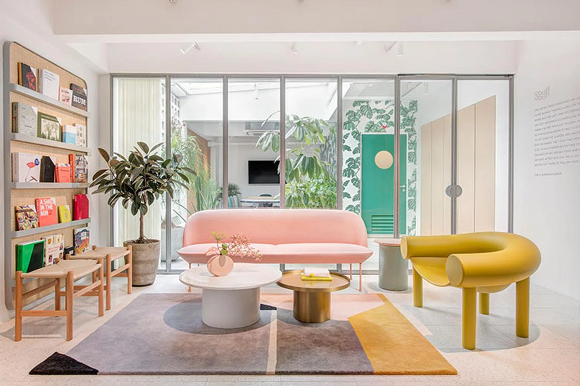 Designed by John Lim and OWMF Architecture, the multi-concept space takes over three renovated shophouses in the Kampong Glam area. Picture a soothing Wes-Anderson inspired colour palette of pastel green, teal and soft pinks, minimalist furniture, and an abundance of natural greenery. Feature pieces include a woven tapestry by Los Angeles-based artist, BFGF hung in the communal pantry.
