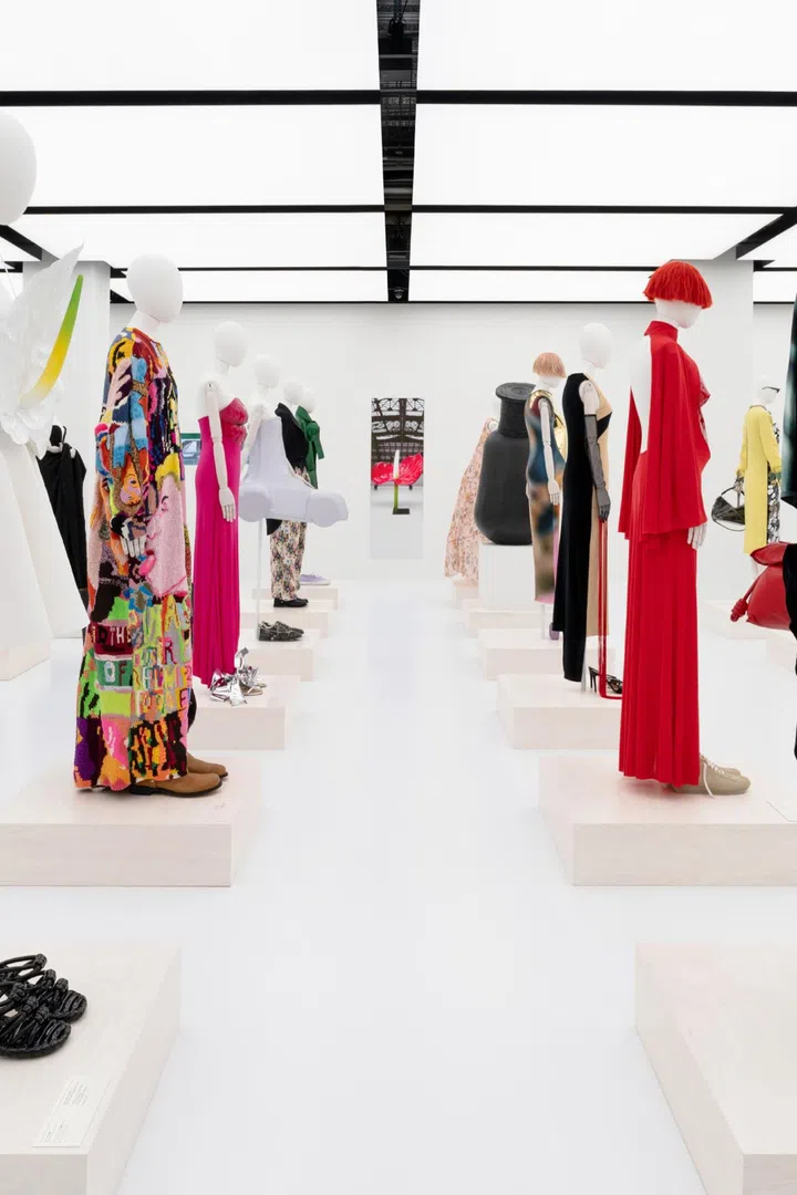 Get up close to 54 striking looks from both men's and womenswear collections, showcased on mannequins atop plinths. Paired with artworks from the Loewe art collection, these pieces create a dynamic dialogue, mirroring the bold silhouettes of the designs.