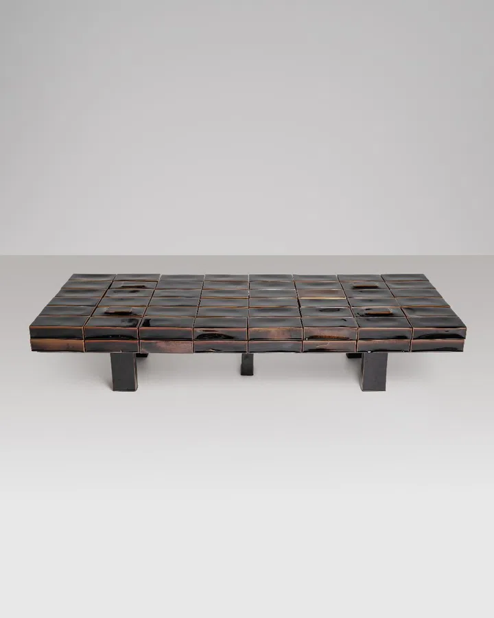 Emmanuel Boos, France, ‘Coffee table ‘Comme un lego’’, porcelain, tenmoku black and wood, 670 x 1760 x 380 mm, 2023