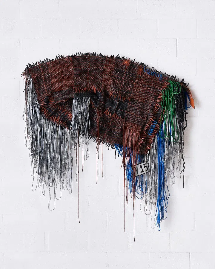 Patrick Bongoy, Democratic Republic of the Congo, ‘CY15’, recycled rubber, inner tubes, silicone, metal valves and wire, 1800 x 1750 x 100 mm, 2023