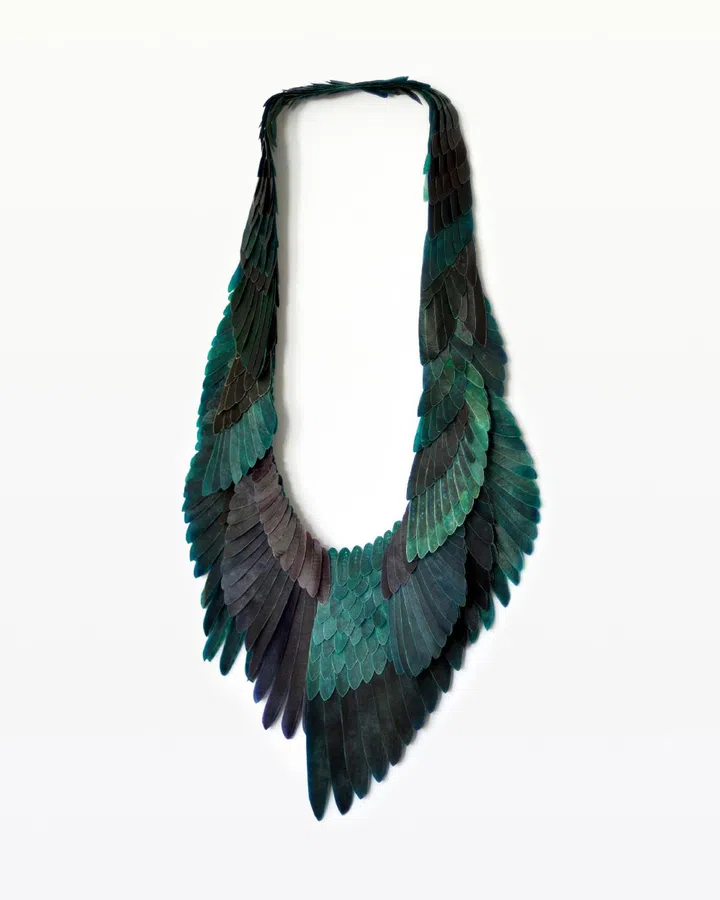 Eunmi Chun, Republic of Korea, ‘Wings of the Blue Bird’, cow’s small intestine, thread and ink, 320 x 610 x 35 mm, 2019