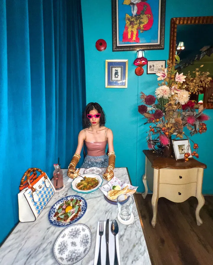 "The design of Marcy's is meant to be transportative, with carefully curated objects and a liberal use of colour, you're meant to feel like you're passing through different cinematic scenes as you walk through the restaurant."