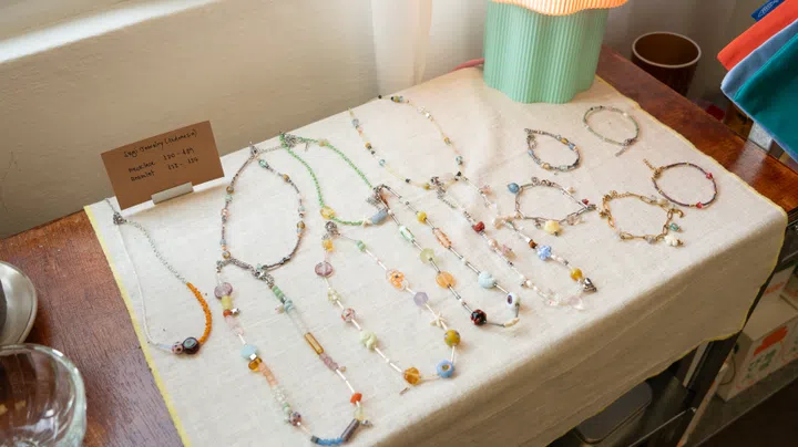 An array of hand-beaded accessories from Indonesian label Segi Jewelry.