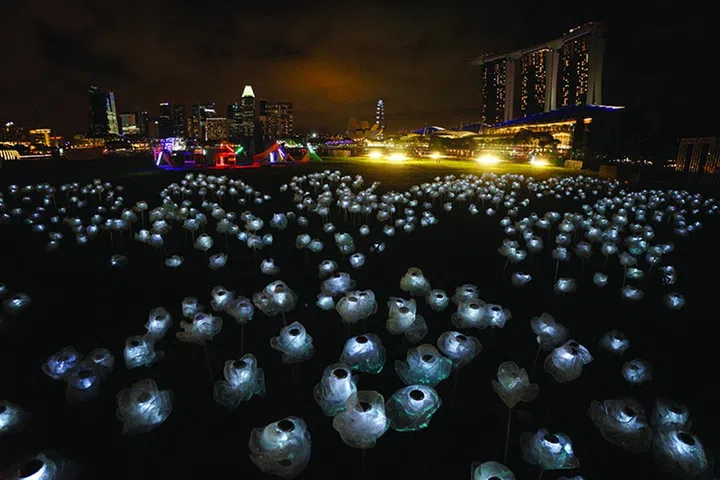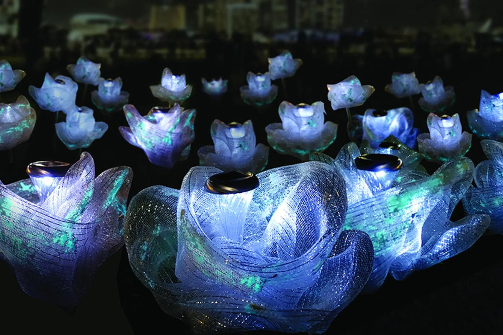 I grew up in a family of florists. I remember the magical childhood experience of running through my grandfather's orchid farms. When I came across i Light Marina Bay’s theme, ‘Light & Nature’, the idea that came to mind was how I could recreate this magical experience of immersing people in a luminescent garden of flowers. I came across these solar modules that allowed the flowers to be powered up by the sun, allowing sustainability and simplicity in execution.