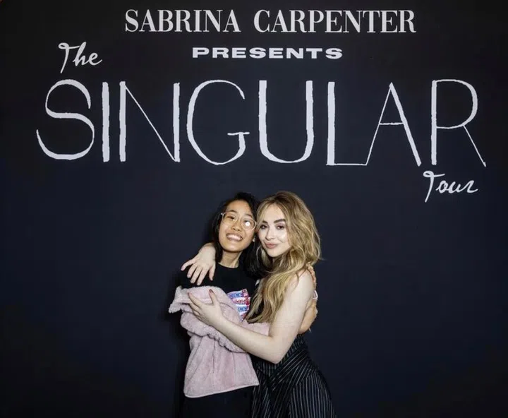 A rare backstage moment between Claire Boon and her idol, Sabrina Carpenter, during the latter's Singular Tour in 2019