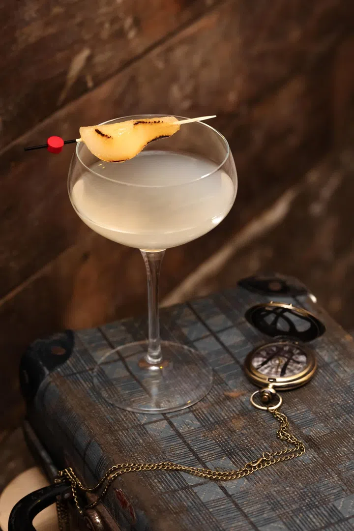 Furthering that theme, its drink programme teases and delights with four chapters spanning from the light and fruit to measured, sometimes audacious, pours. These include the deliciously smooth Midsummer Dystopia (pictured) that pairs smoked vodka, pisco and umami bitters with unctuous nibbles of caramelised pair; their salted caramel-laced take on the classic White Russian; as well as the World of Tomorrow – a mix of prosecco, spicy mango and banana milk that’s as vibrant as it is incredibly drinkable.