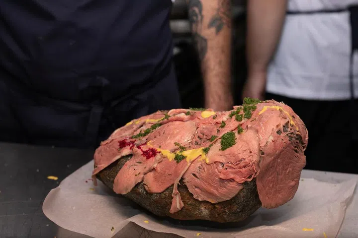 Few items on the menu (we’re told they’re translated from Hebrew, hence the grammar and very evocative descriptions) are borrowed from its sister restaurants wholesale such as the Our world famous baby cauliflower and Burning yellow potato filled with sour cream topped with a sharp cut salad. And, how could we forget, the briefcase-sized steaming focaccia that’s chopped up with a cleaver then drizzled with more olive oil. The slices of focaccia are given out free so bring along a spare stomach.