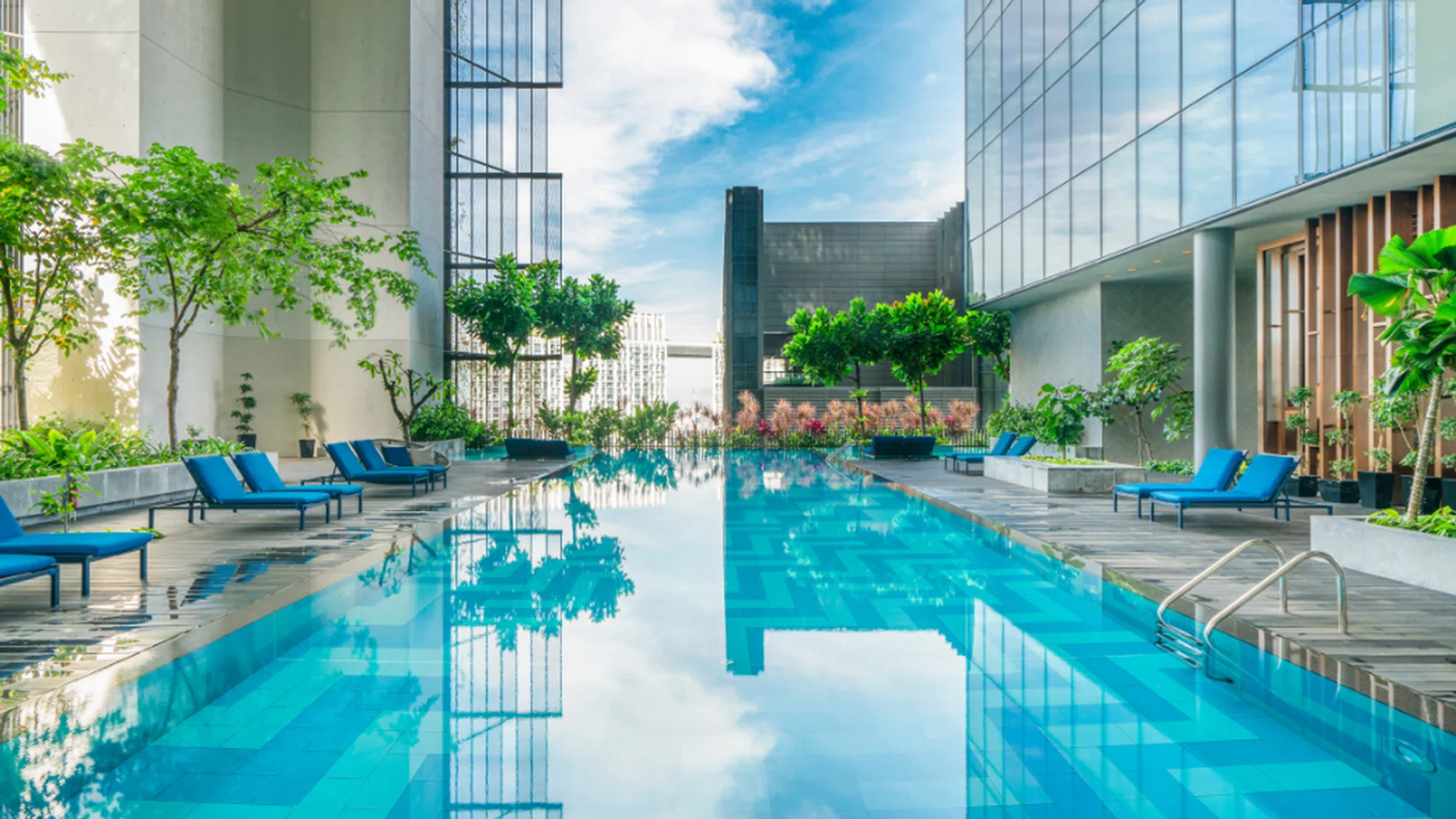 For those looking to recharge, the options are endless. Start your morning with yoga or meditation on the Sky Terrace on Level 12, or hit the 24-hour gym to keep up with your daily fitness routine. Alternatively, make time to dive into the cool waters of the two rooftop pools on Level 27, which offer breathtaking city views, flanked by cobalt-blue lounge chairs. Guests staying in Club Rooms and Suites enjoy exclusive access to a serene infinity pool on Level 21 – a perfect spot for a moment of quiet reflection.