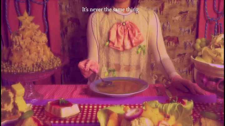 "I was introduced to different approaches to art making such as archive and social practice among others. These were forms of art expression that never crossed my mind to explore and research as I have always leaned toward abstraction. While I’ve always practised conceptualising in my work (pictured is a still from Wong’s film Juliet’s Dinner in collaboration with Singapore-based artist Stephanie Jane Burt), the fast turnover of projects sometimes only motivates me to think visually first then conceptually. I wanted to be less limited in my approach so I’ve been developing a flow of research, finding reading and archival materials as part of developing a concept.