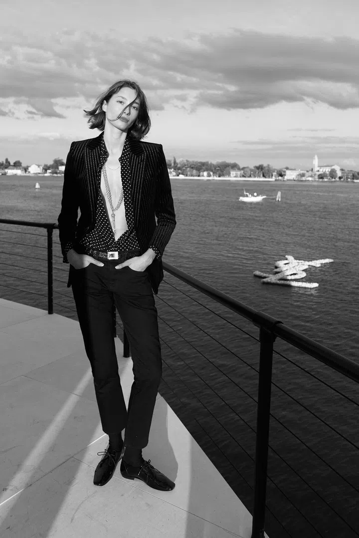 Before the Valentino couture spectacle on July 15, Saint Laurent brought its menswear Spring 2022 show to the northern island of Isola Della Certosa situated in the Venetian Lagoon. The collection was an outing in Gothic Romance, filled with Byron-esque poet shirts, billowing cloaks and skinny tailored suits.