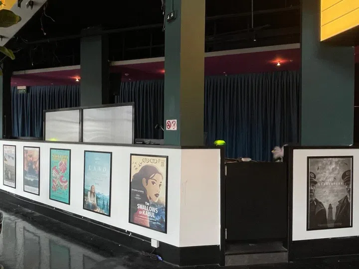 The new ticketing booth – now decorated with film posters – used to be the main DJ deck.