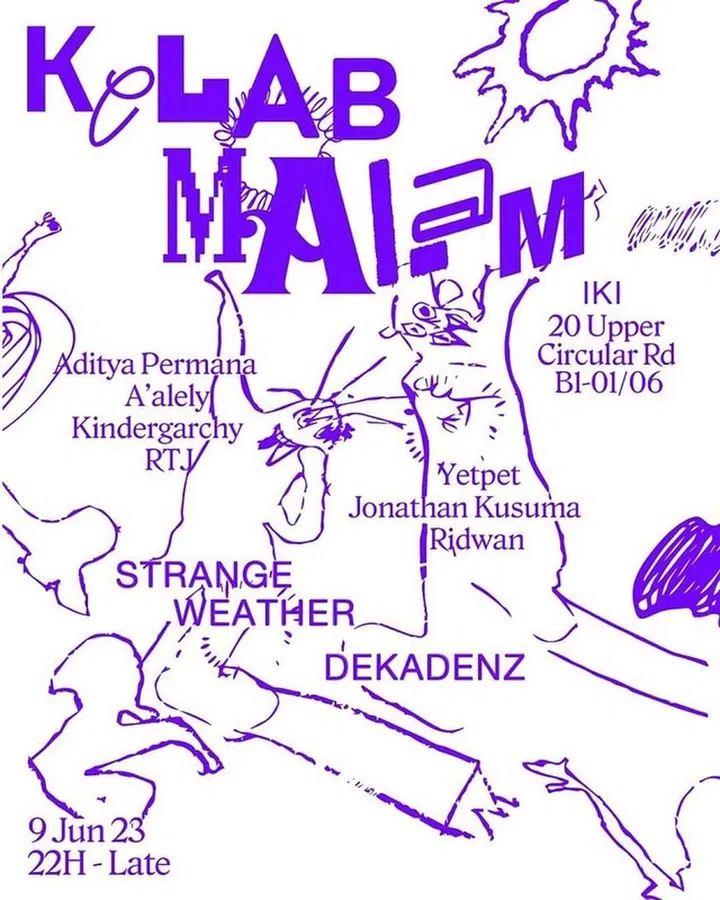 The Strange Weather team has always sought to push the format of raves, exceeding its patrons’ expectations with every party. With their firm belief that other mediums should exist hand in hand with otherworldly music, you’ll never know what to expect stepping into one of the collective’s parties. Their all-new monthly outfit Kelab Malam is no different, with its focus on off-kilter beats and experimental tunes. Situated within iKi at 20 Upper Circular Road, its second iteration on June 9 features Jakarta’s very own weird and groovy bunch – which includes the likes of Aditya Permana, Jonathan Kusuma and Ridwan alongside Strange Weather’s very own Yetpet, Kindergarchy, RTJ and Aalely.