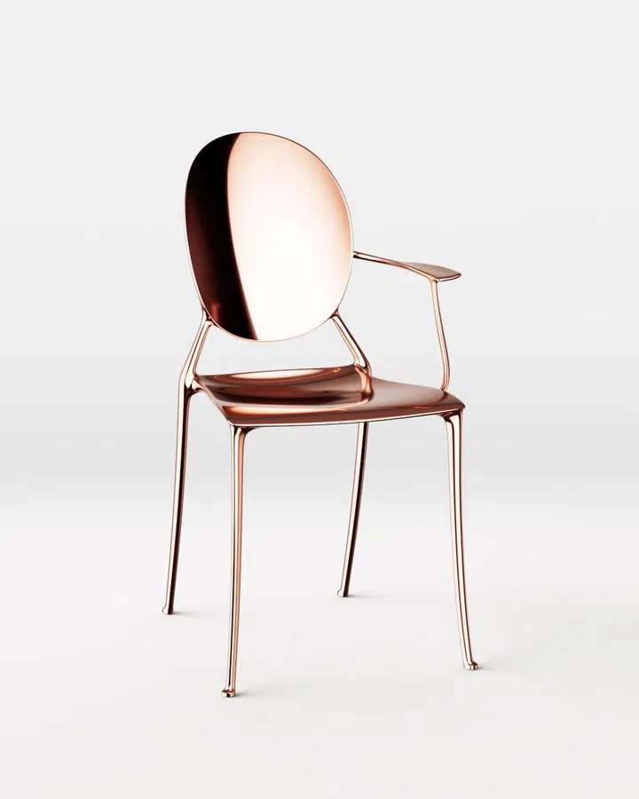 The chair, now renamed Miss Dior (for this collaboration), is available in two either a polished or satinated finish and in three colours: black chromium, pink copper or gold. They will be available in a selection of Dior boutiques come year-end, as well as on order at all Dior addresses.
