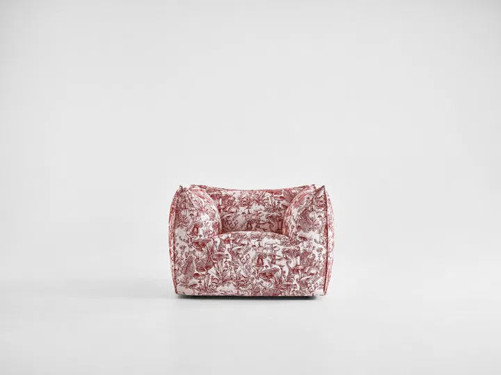 McCartney took part in this year's Salone del Mobile through two collaborations: namely Italian furniture maker B&B Italia, as well as heritage British wallpaper house Cole & Son. The former sees the designer re-imagining B&B Italia's popular Le Bambole armchair (pictured) upholstered in McCartney's Spring/Summer 2022 collection’s hand-drawn Fungi Forest burgundy print and crafted from conscious materials.