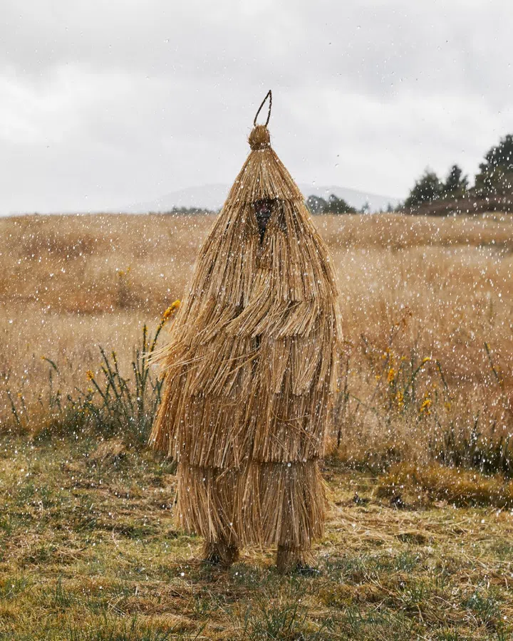 It's elevated upcycling however; Loewe has utilised the Galician leather weaving known as Coroza and the Korean technique of paper weaving known as Jiseung to put a craft-first spin on making over these existing items. According to the brand, Coroza is an ancient Galician technique which consists of weaving straw, reeds, briar and other natural fibres to create raincoats, hats and baskets (as pictured here).