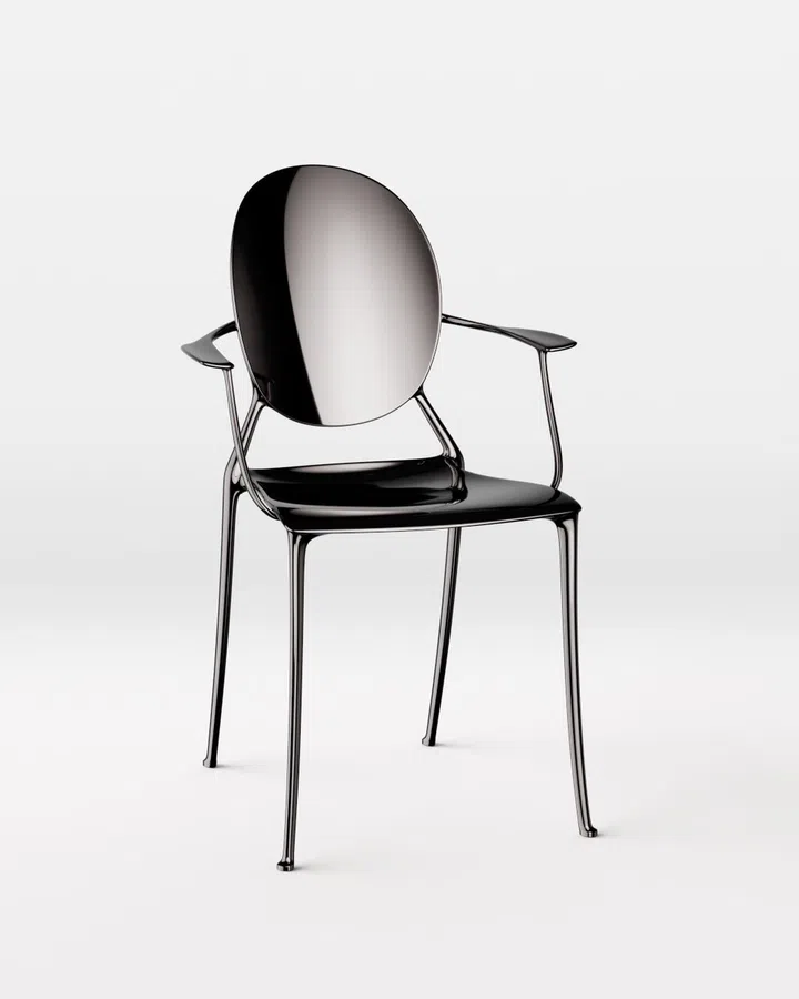 The Medallion chair (a design easily identified by its oval back shape) has been a fixture in Dior's history since its founder's days, and the house regularly invites designers to put their own spin on this classic piece. The latest collaborator is none other than design luminary Philippe Starck, who has re-made the chair in a thin, spindly version, of which there are three playful variations – armless, with one arm and two arms.