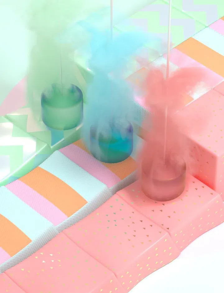 Set in a loop, his rollicking shapes set amid a pastel paradise are hypnotising – a visual MO that’s practically tailor-made for social media (@cmttat) where – as of press time – he commands 27.9K followers and commissions from the likes of L’Oreal and French luxury jeweller Van Cleef & Arpels.