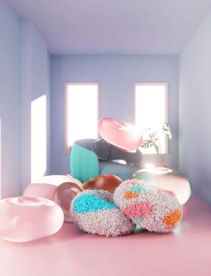 His aesthetic: It’s hard to say no to Chia’s buffet of voluptuous, almost tactile shapes gently bouncing and forming with a flourish onscreen, reminiscent of lava lamps – if only those came outfitted in every pastel hue possible. It’s a very pretty virtual universe that Chia has perfected, and it stems from a good place.