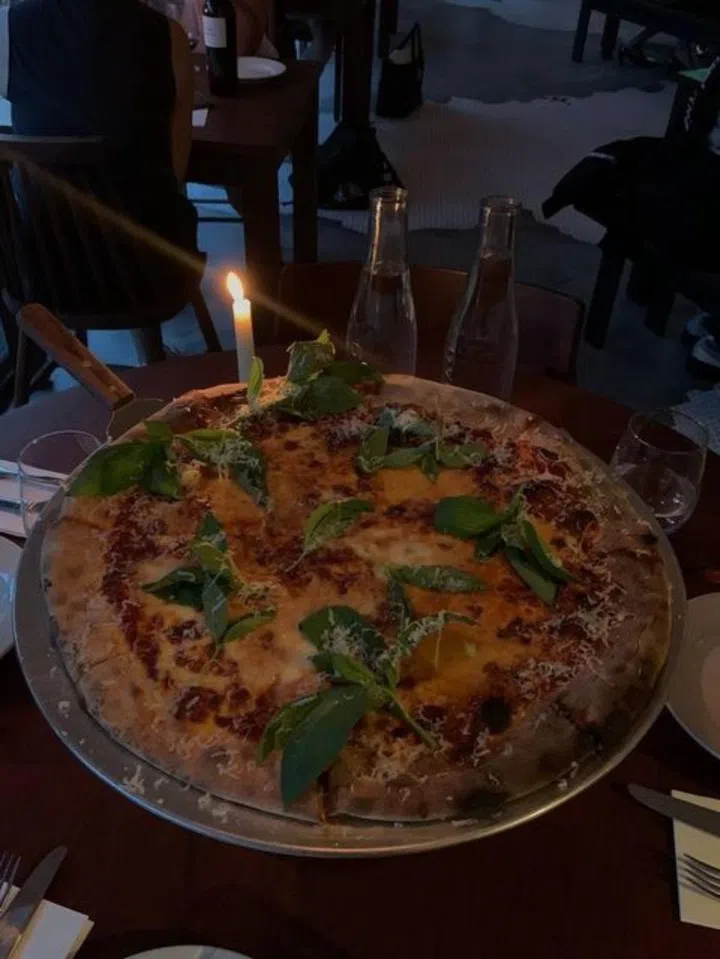 THE SIGNATURE DISH: The Original 18” Pie done New York-style with buffalo mozarella, mozarella, parmesan, basil and optional roasted garlic from Lucali BYGB.