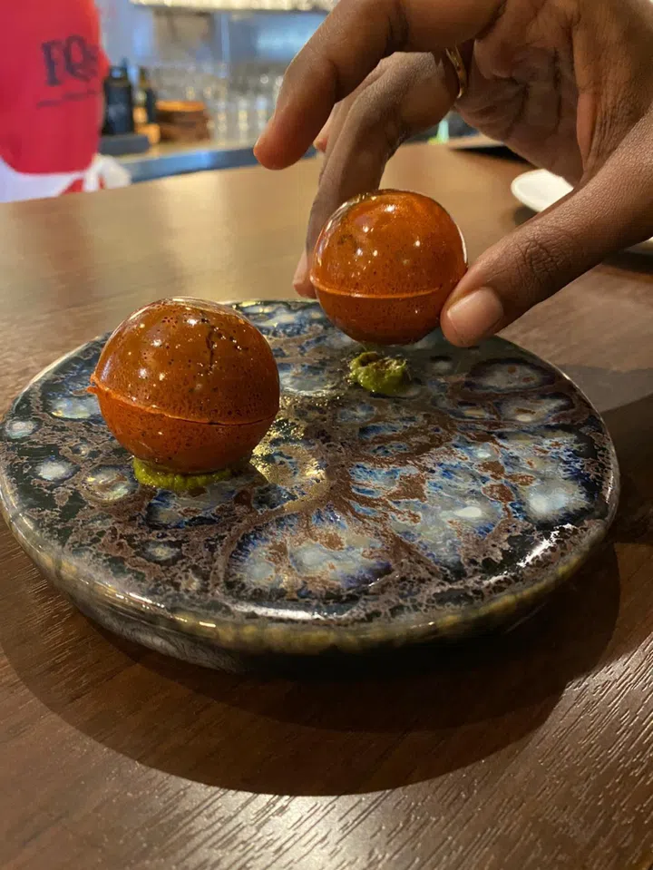 THE SIGNATURE DISH: Pani Puri from modern Indian grill restaurant Thevar.
