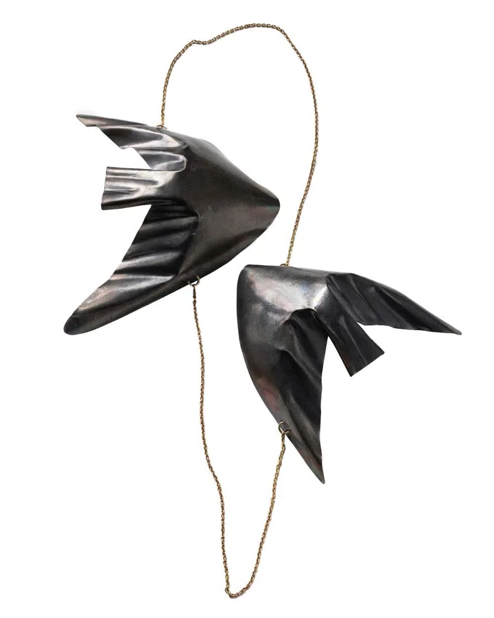Dorothea Pruhl, Germany, ‘Migratory Birds’, 2025, titanium, gold, 290 × 430 × 50 mm