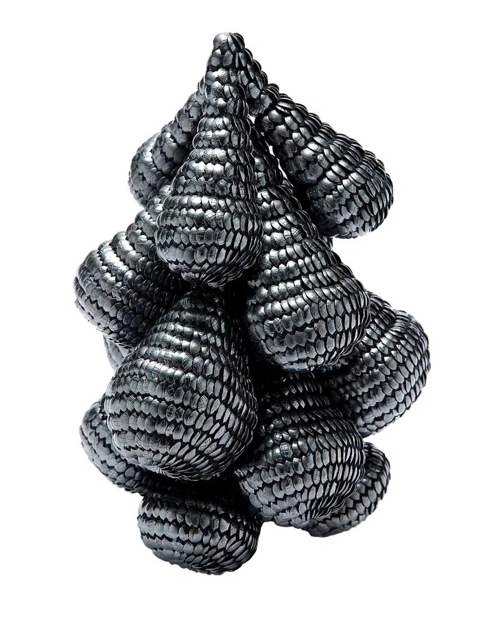 Jieun Park, Republic of Kore, ‘Seed of Circulation’, 2025, oxidized sterling silver, linen thread, 153 × 153 × 254 mm