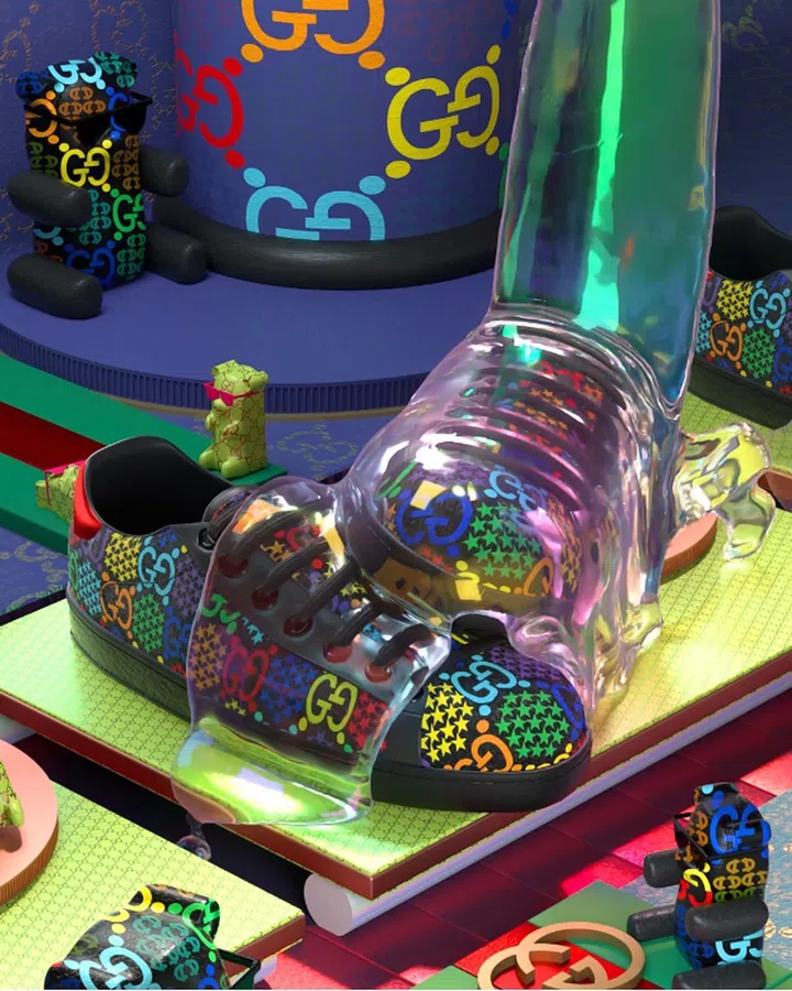 Digital artist Oh Jia Hao, a.k.a. Lioncolony, put his high-gloss psychedelic spin on sneakers from Gucci's Psychedelic collection. Credit: Oh Jia Hao