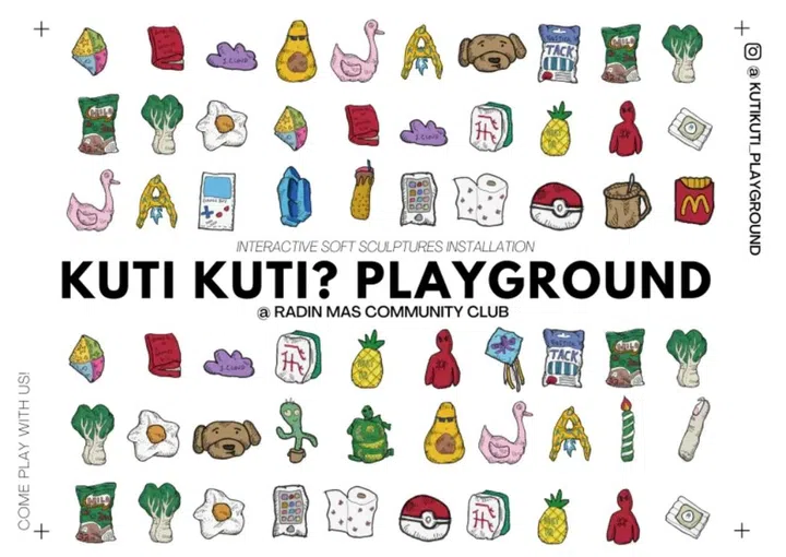 As the name implies, Kuti Kuti? is a community art project that riffs off the traditional children's game in which two opposing players take turns to deftly flip colourful plastic tokens on top of those of their opponent. In this project, the game is transformed into an interactive, life-sized soft sculpture playground through co-creation, re-emphasising the value of analogue play to connect all kinds of people in the digital age.
