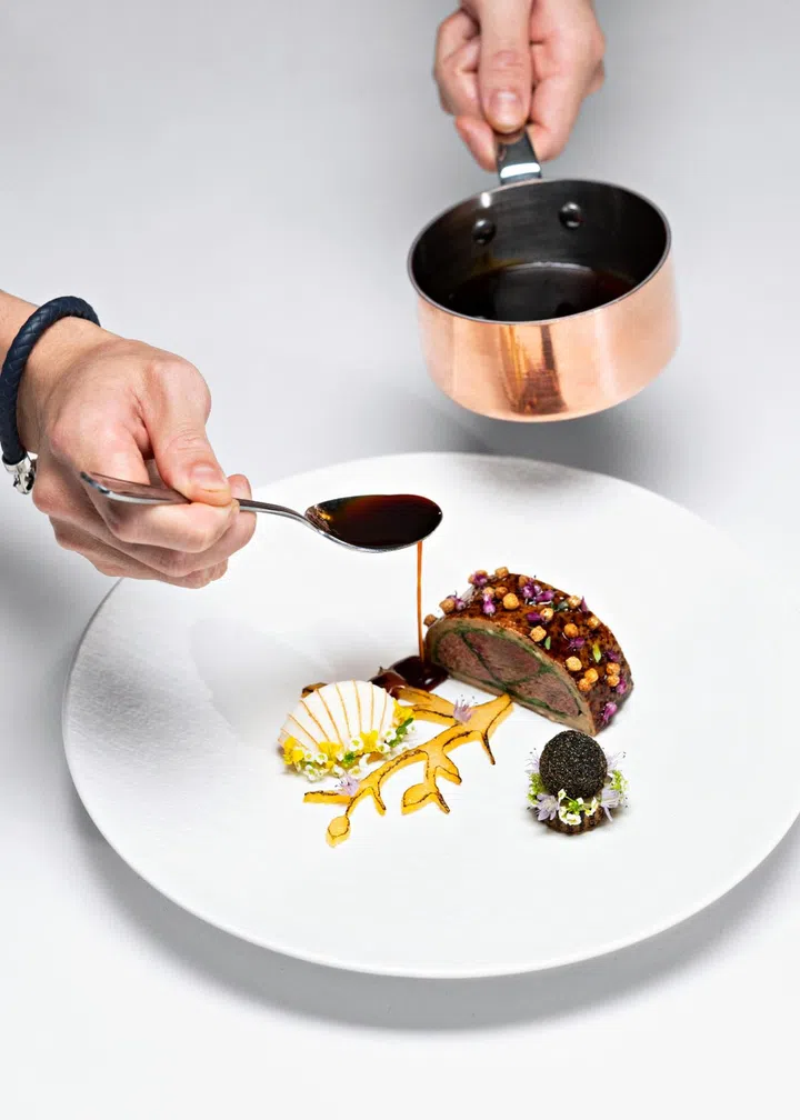 Most unique dish he has created: “The two dishes I created for Bocuse d’Or Final 2021. I also had to design and conceptualise the platter and takeaway box for the two dishes. The platter challenge centred on a hot dish, and showcased a whole braised beef paleron (pictured) for the first time ever. With Singapore in mind, my sustainable takeaway box was inspired by Singapore Botanic Garden – an attraction that is recognised by the world due to its commitment in highlighting the importance of sustainability.