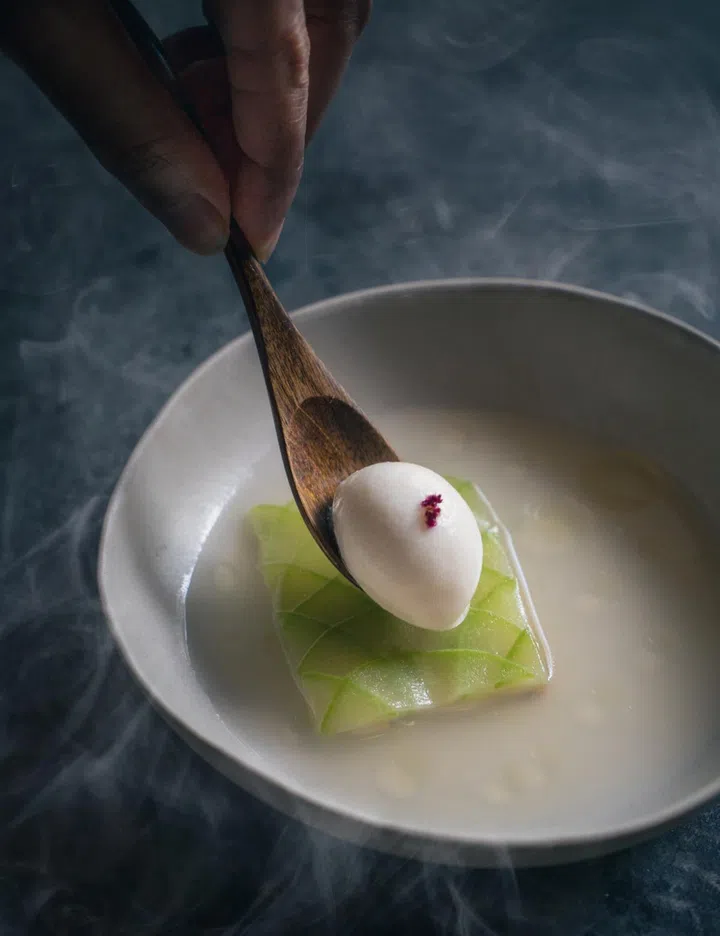 His signature dish: “Every dish in Cloudstreet is a team effort. Among the dishes that I have been a part of, my favourite is the smoked kingfish with chayote, clarified watermelon and horseradish (pictured). I feel that its appeal stems from the use of chayote, a vegetable not commonly used in western cuisine; as well as the fact that we used clarified watermelon juice as a savoury dish instead of a dessert. The play of textures, flavours and temperatures is something I really enjoy.”