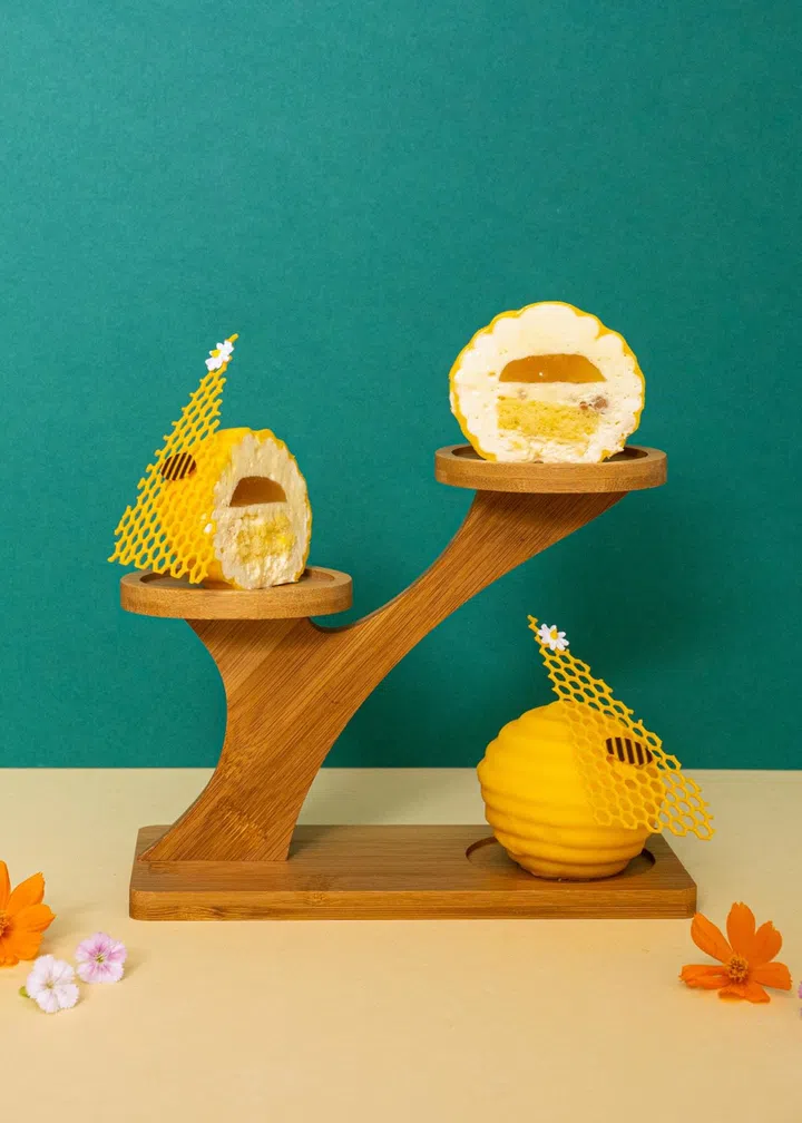 Her signature dish: “The Beehive cake (pictured), where I enjoy the intricacy of creating the honeycomb and the curves of the beehive. And it definitely helps that it is aromatic and fragrant from the lemon thyme and litchi honey used.”