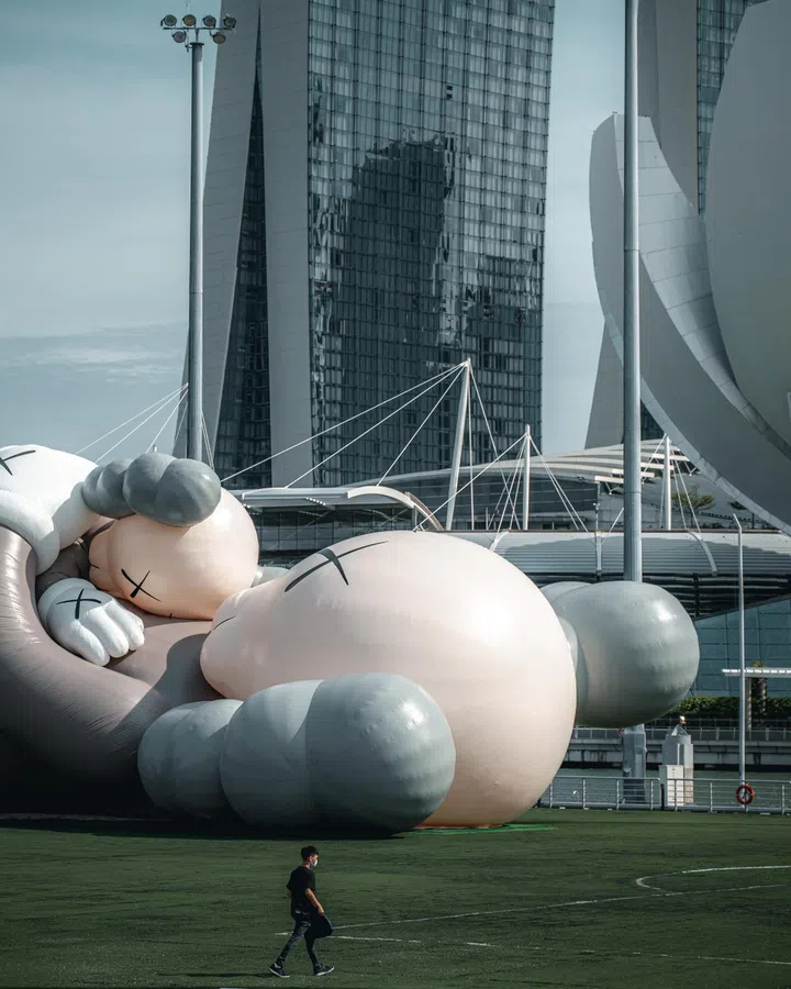 After all the legal brouhaha last week, the Kaws: Holiday exhibition has finally been cleared to resume opening to the public. You'll have undoubtedly seen images of the larger-than-life 42-metre long version of American artist Kaws (real name: Brian Donnelly)'s sculpture of his signature character Companion, which depicts the character in a reclined position, adorably holding a smaller version of itself.