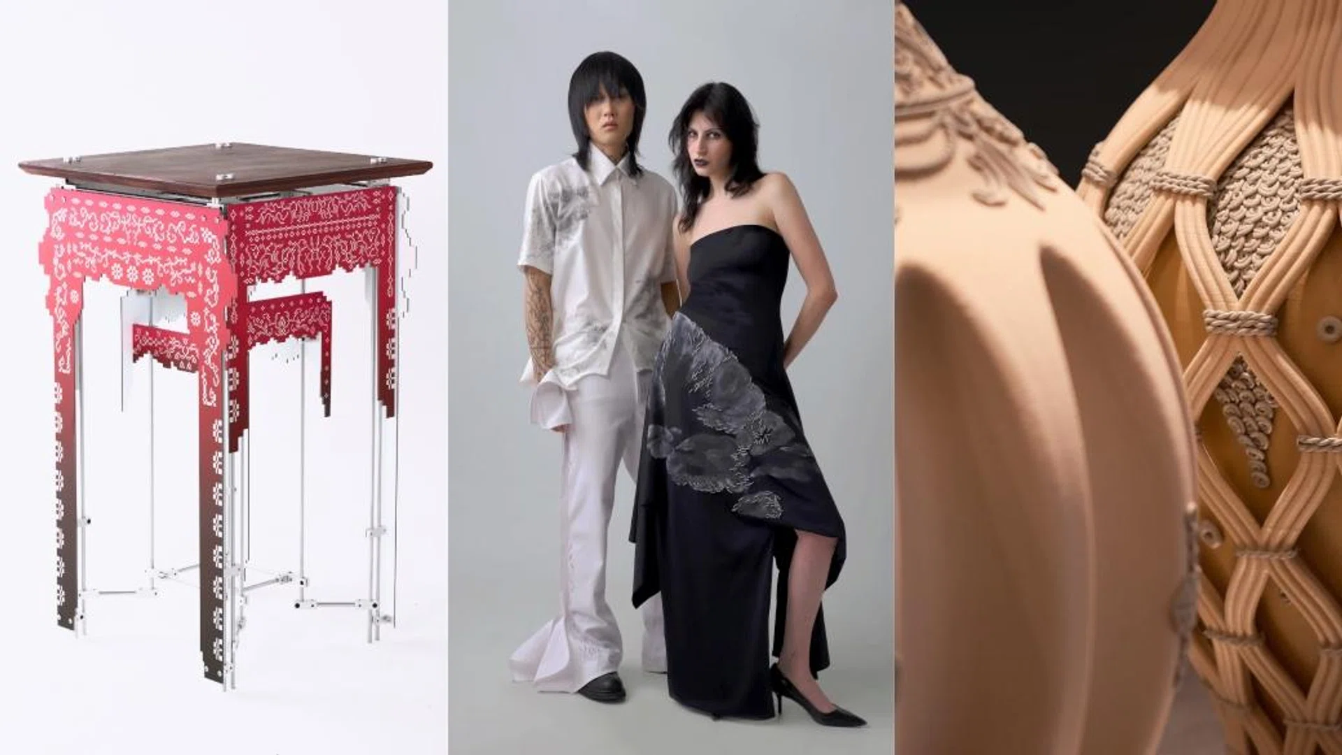 At the centre of the project is lacquer threading (qi xian diao), a rare traditional craft technique still practised in Singapore by Andy Yeo, one of the few remaining artisans working in this method. The final works take the form of vessels, first shaped using 3D printing before being finished with hand-applied lacquer threading. Together, the trio bridges contemporary design with traditional craft, exploring how heritage techniques can evolve through new collaborations and contexts.
