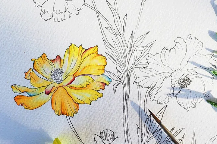 From blue pea and hibiscus to bougainvillea and coral vine, she observes her “subjects” directly from nature, before bringing them to life on paper through layers of luminous washes of colour. (All her “studies” are captured and categorised neatly on her namesake Pinterest account.)